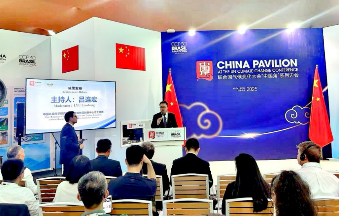 巴西时间11月15日,由生态环境部应对气候变化司指导、中国环境科学研究院牵头主办的《联合国气候变化框架公约》第三十次缔约方大会中国角“低碳技术创新与产业实践”主题边会在巴西贝伦顺利召开。本次边会特别设置了成果发布环节,由我院减污降碳协同创新中心总工程师吕连宏主持。多项重要成果在现场首次发布,受到与会嘉宾的广泛关注并引起热烈讨论。