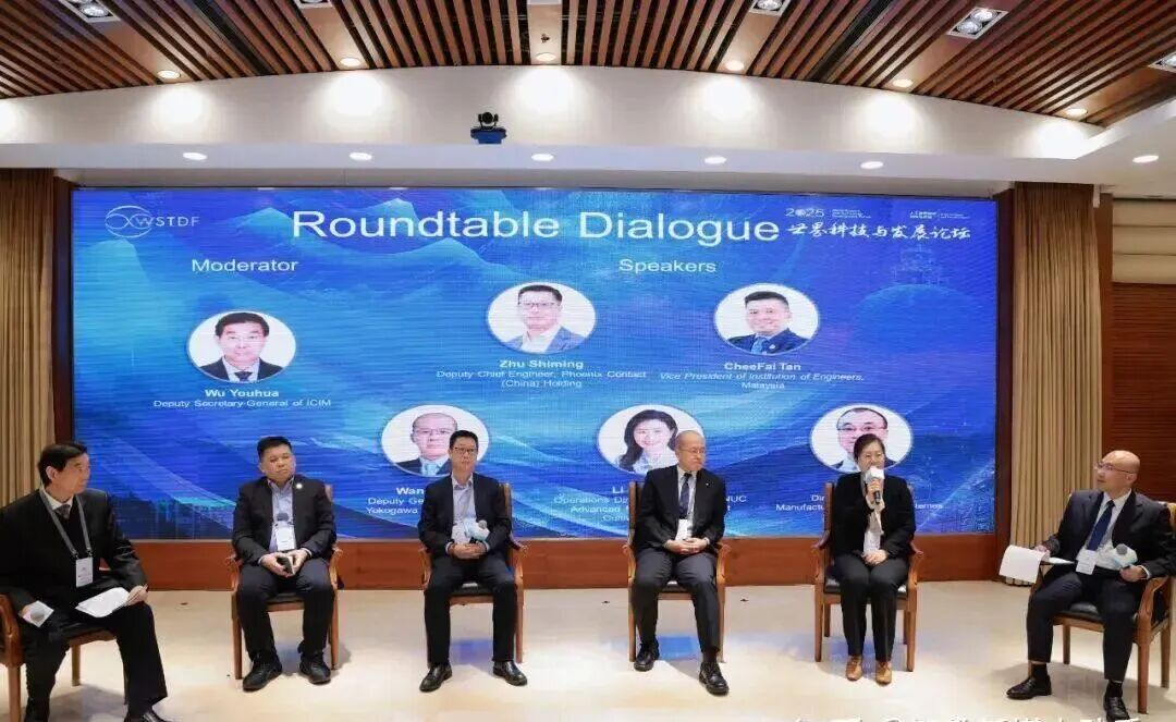 在圆桌对话环节,国际智能制造联盟副秘书长吴幼华与马来西亚工程师学会副理事长CheeFai Tan、菲尼克斯(中国)投资有限公司副总工程师朱世明、横河电机(中国)有限公司副总经理王东、达索系统信息技术有限公司智能制造总监龙滔、北京发那科FANUC先进制造人才培养联盟运营总监李冬颖等多位产业界代表,围绕技术创新、产业落地与人才培养等关键议题展开深度对话,为全球智能制造产业的协同演进提供了多元见解与可行思路。