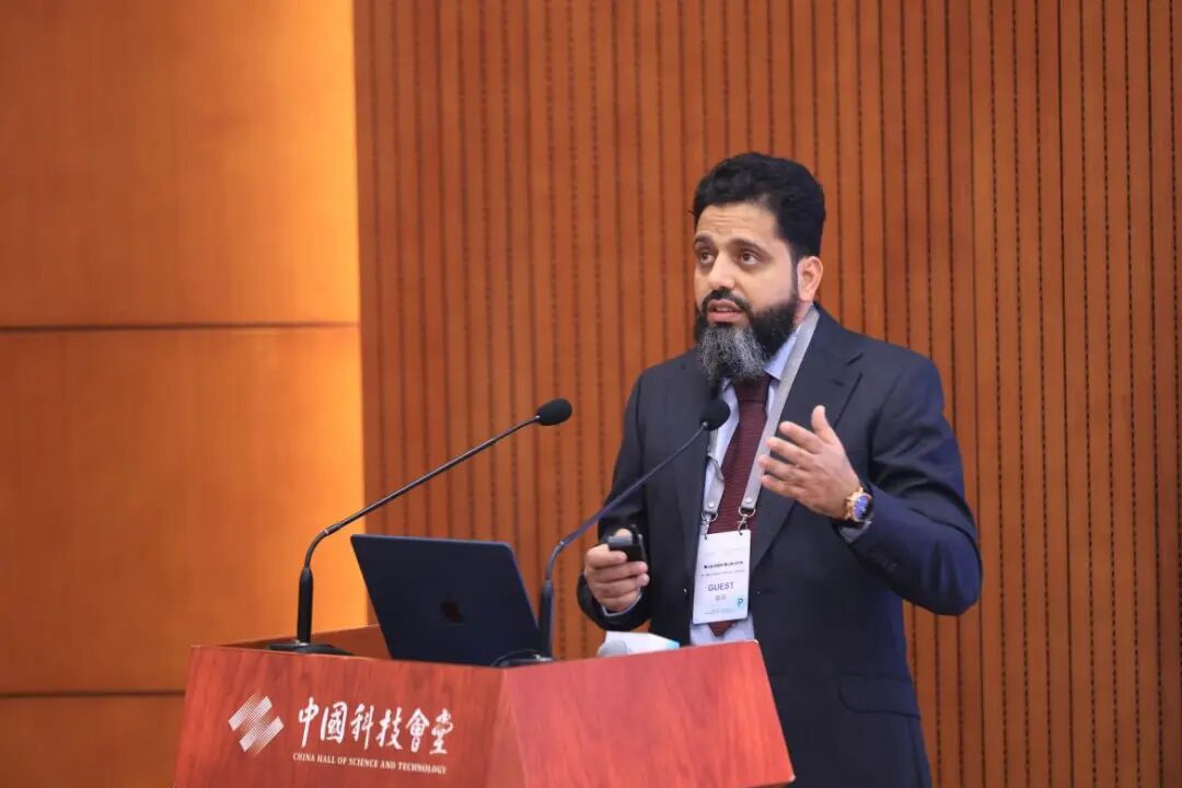 阿曼健康科学学院创新与知识产权主席赛义德·哈里思·赛义德·拉瓦希(Said Harith Said Salim Al-Rawahi)以《阿曼的具身智能发展及其在公共健康领域的应用前景》为题进行主题演讲,从国际视野出发,分享了阿曼在具身智能领域的探索,介绍了阿曼在远程医疗、物流配送、康复护理等场景中应用具身智能的潜力,并强调与中国加强创新合作的重要性。