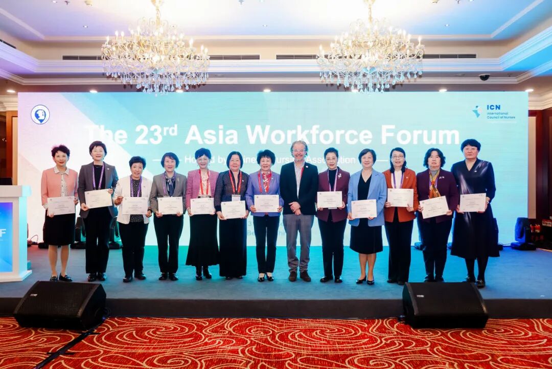 2025年11月12日至13日,由中华护理学会与国际护士会联合主办的第23届亚洲护理人力资源论坛在京隆重举行。来自日本、韩国、蒙古、新加坡、泰国、马来西亚、菲律宾、印度尼西亚、印度,以及我国香港、澳门、台湾地区的13个国家和地区的护理学会理事长及代表出席了会议,围绕护理人力相关的教育、领导力与数字化未来展开深度对话与思想交汇。