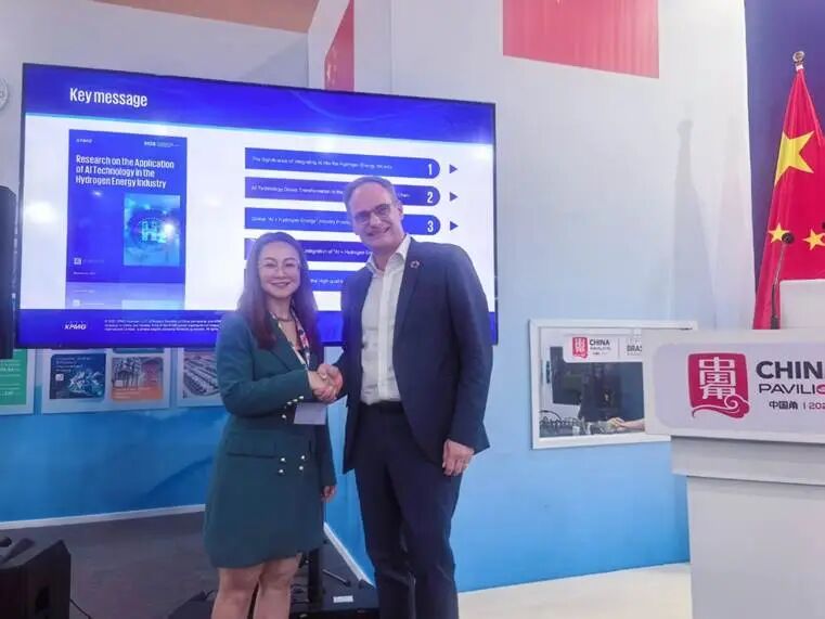 氢能作为全球实现深度脱碳目标的重要手段,与AI技术的融合正展现出巨大的破局潜力。AI能够显著提升氢能全产业链的效率与智能化水平,不仅推动绿氢制备成本大幅降低,还为能源体系的数字化转型提供关键技术支撑。在此次主题边会期间,国际氢能燃料电池协会携手毕马威全球ESG首席运营官Gauthier Acket先生共同在中国角隆重发布了“Research on the Application of Al Technology in the Hydrogen Energy industry”(《智启氢程——AI技术在氢能领域的应用研究》) 报告英文版。报告系统探讨了 AI技术如何赋能氢能“制储运加用”全产业链条,不仅梳理了全球“AI+氢能”最佳实践案例,还深入剖析行业当前所面临的挑战,并提出高质量发展建议,重点推动行业间的信息共享与协同创新,为氢能产业高质量发展注入新动能。
