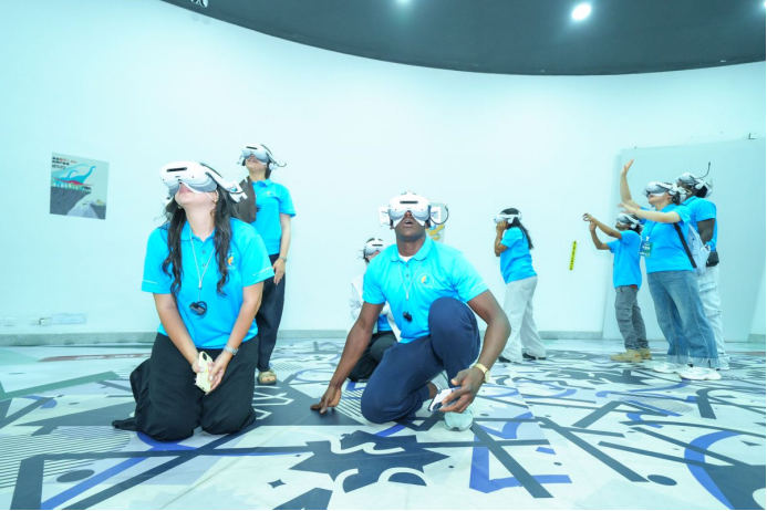 参加第九届“一带一路”青少年创客营与教师研讨活动(中非板块)的南非学生体验VR技术