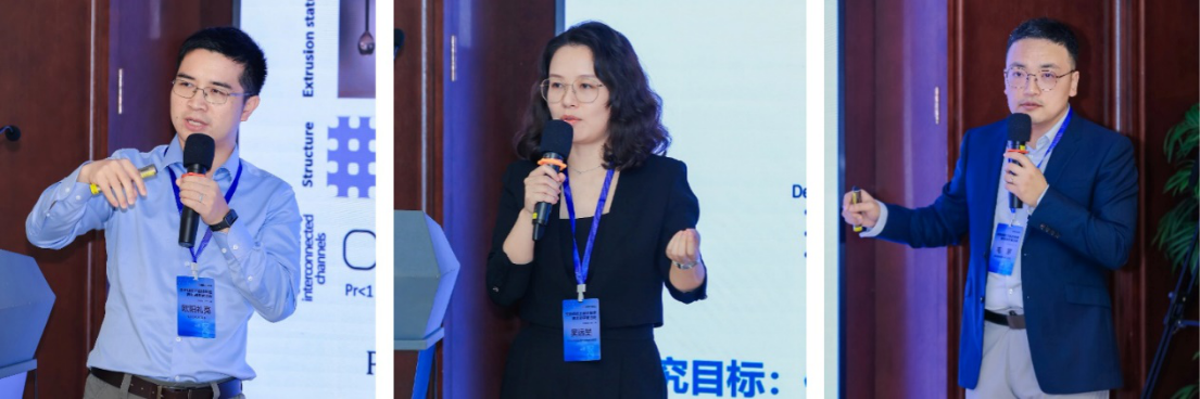 主旨报告环节,西安交通大学毛茅以“微结构调控活性定向心肌组织功能化制造”为题,介绍微纳3D打印技术在功能化活性心肌组织制造中的应用,揭示微结构在驱动细胞定向、促进血管化及实现力电协同调控中的关键作用。与会青年科学家就细胞行为调控机制、压电刺激理念等提问交流。清华大学欧阳礼亮作“载细胞生物墨水设计、制造与应用”报告,探讨如何适应细胞三维生长和组织形成的生物墨水微界面设计与力学微环境构筑,赋能从细胞到组织级别的生物功能转变。与会青年科学家就动态水凝胶、类器官及细胞递送中留存率等提问交流。华中科技大学同济医学院附属协和医院吴远昊以“面向胶原修复的超分子生物智造”为题,详细介绍从设计原理、分子结构、自组装重排到临床前实验的系统性研究过程,并提出临床解决方案。与会青年科学家就AI辅助设计验证、多肽材料普适性、纤维瘢痕可逆性、柔性导电材料超分子组装等提问交流。