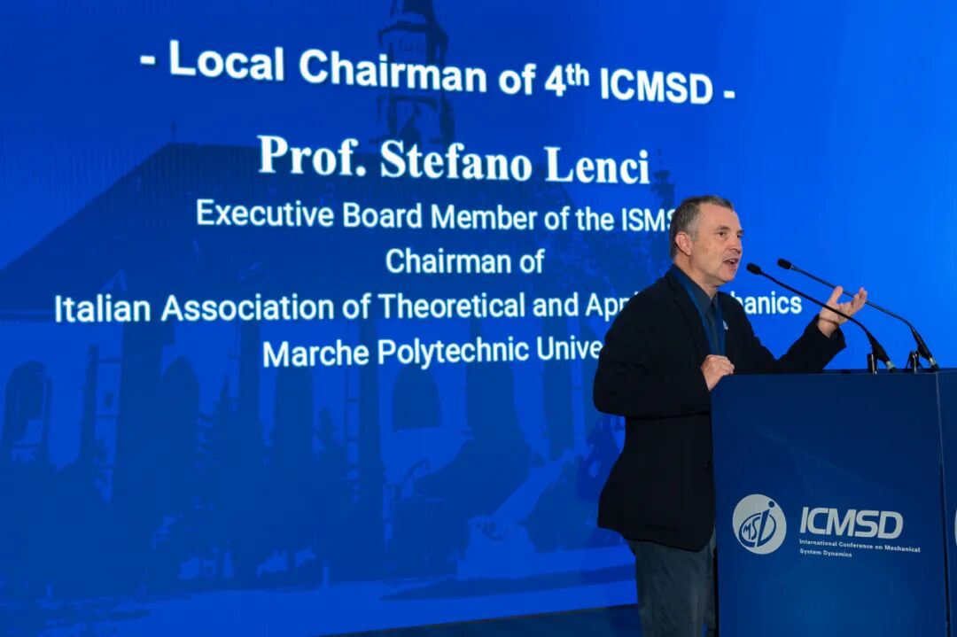 第四届ICMSD当地会议主席、意大利马尔凯理工大学(Polytechnic University of Marche)的Stefano Lenci教授介绍了下一届会议的现阶段筹备情况,现场播放了第四届ICMSD宣传片,并诚邀全球机械系统动力学领域的学者参会。