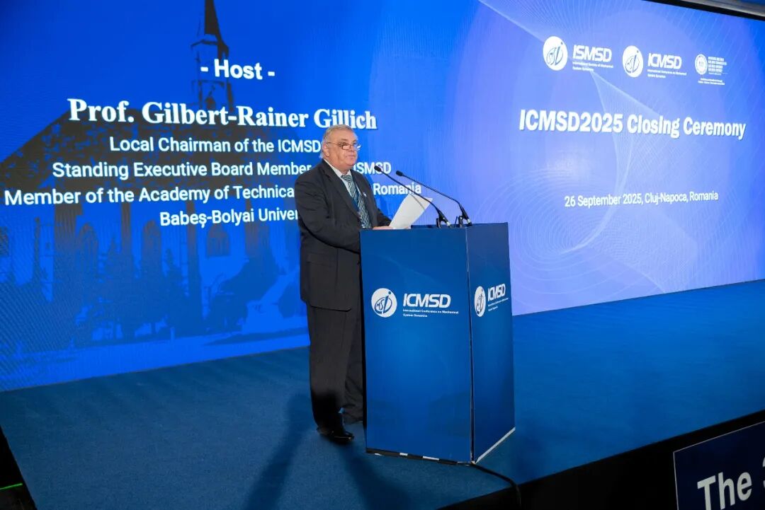 9月23日至27日,第三届机械系统动力学国际会议(The 3rd International Conference on Mechanical System Dynamics, ICMSD 2025)在罗马尼亚克卢日-纳波卡(Cluj-Napoca, Romania)举办,来自全球44个国家的24位院士、16位国际学会主席、47位国际期刊主编等著名科学家线下、线上参会,聚焦“机械系统动力学研究进步推动工业发展”主题,分享机械系统动力学基础理论研究以及工程应用方面的新思想、新技术和新方法,促进机械系统领域国际学者在理论、试验与工程实践方面的学术交流与合作,推动机械系统动力学的快速全面发展。