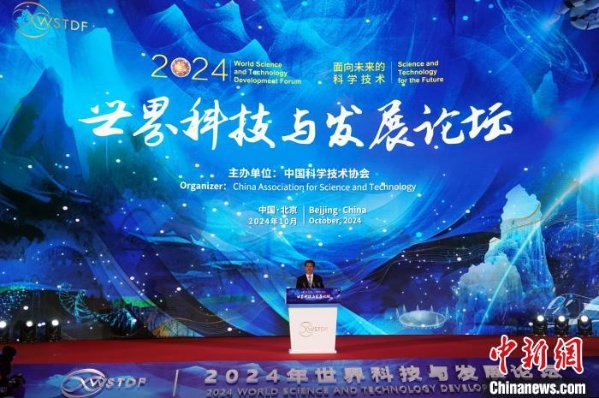 10月22日傍晚,2024年世界科技与发展论坛在北京开幕,论坛常务副主席、中国科协分管日常工作副主席、书记处第一书记贺军科主持开幕致辞及成果发布环节。中新网记者 孙自法 摄