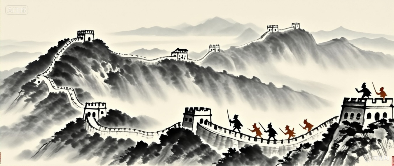 AI生成图:长城既是军事防御体系,也代表了国家凝聚力和文明的坚韧