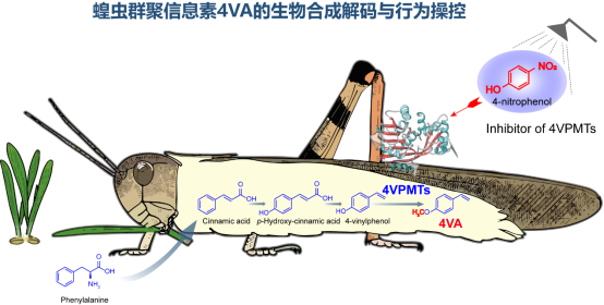 蝗虫群聚信息素4VA的生物合成解码与行为操控