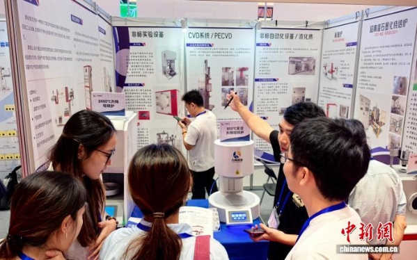 图为民众在了解展示的新材料产品。邓竣缤 摄