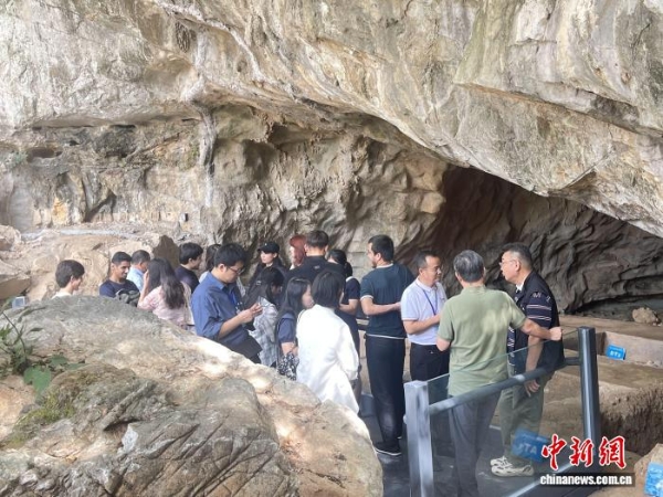 10月15日,广西桂林市临桂区政府组织20多名专家学者,先后在大岩遗址、桂林甑皮岩遗址博物馆进行现场考察,重点考察出土陶瓷。通过实地勘查这两处遗址,专家学者们围绕遗址的学术价值、保护难点以及未来规划展开深入交流探讨,为后续保护与研究奠定基础。图为专家学者在桂林甑皮岩遗址博物馆考察。何茜 摄
