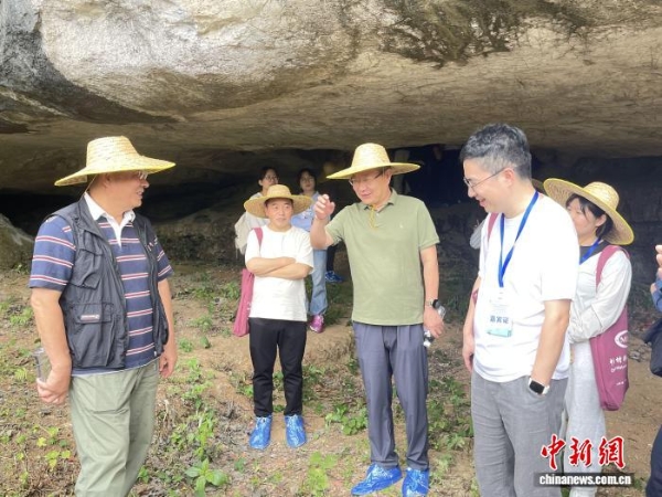 图为专家学者在大岩遗址现场交流。何茜 摄