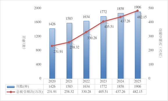 在数量方面,《报告》收录优秀的中国科技期刊数量逐年递增。2025版收录中国科技期刊1906种,比2020版增加480种。在质量方面,《报告》2025版收录中国科技期刊刊均WJCI指数(世界期刊影响力指数)为1.490,世界排名第7位,相比于2020版上升了5个位次;刊均总被引频次由2020版的1626次增加到2025版的2530次,增长了55.60%;刊均影响因子由2020版的1.105增加到2025版的2.434,增长了1.2倍。