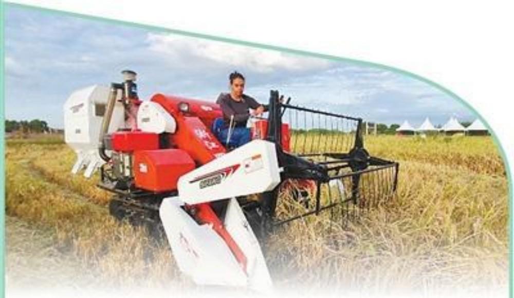 在巴西阿波迪的一处稻田里,一名巴西妇女在家庭农场操作中国生产的水稻联合收割机。 迪奥任塞·诺夫雷加摄