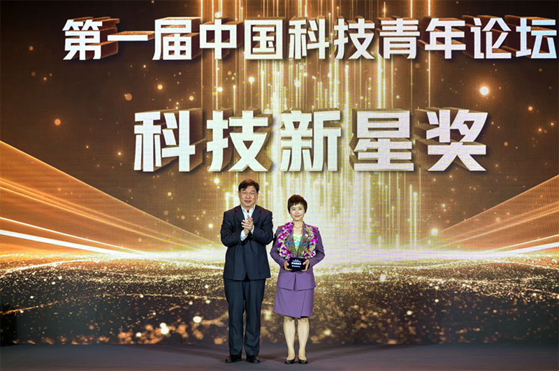 中国科协党组副书记、专职副主席、书记处书记束为为获奖者颁发论坛科技新星奖