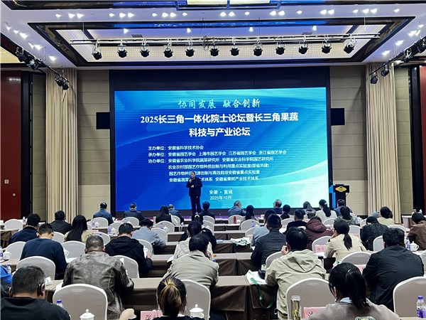 10月23日,2025长三角一体化院士论坛分论坛暨长三角果蔬科技与产业论坛在安徽省宣城市举办。论坛以“协同创新·果蔬产业升级”为主题,由安徽省农业科学院支持,苏浙沪皖四省市园艺学会联合承办,多家重点实验室和产业技术体系协办。