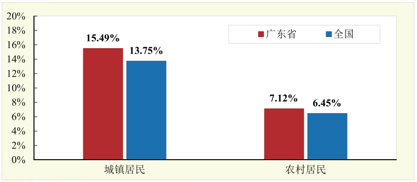 与全国各相应群体的总体水平相比,广东省不同群体的公民科学素质水平呈现出不同的特征。城镇居民和农村居民具备科学素质的比例分别达到了15.49%和7.12%。男性公民和女性公民具备科学素质的比例分别为14.96%和10.34%。18-39岁、40-54岁和55-69岁年龄段公民的科学素质水平分别为17.45%、10.51%和5.79%。大学专科及以上文化程度、高中(中专、技校)文化程度、初中及以下文化程度公民具备科学素质的比例分别为33.63%、13.55%、5.69%。