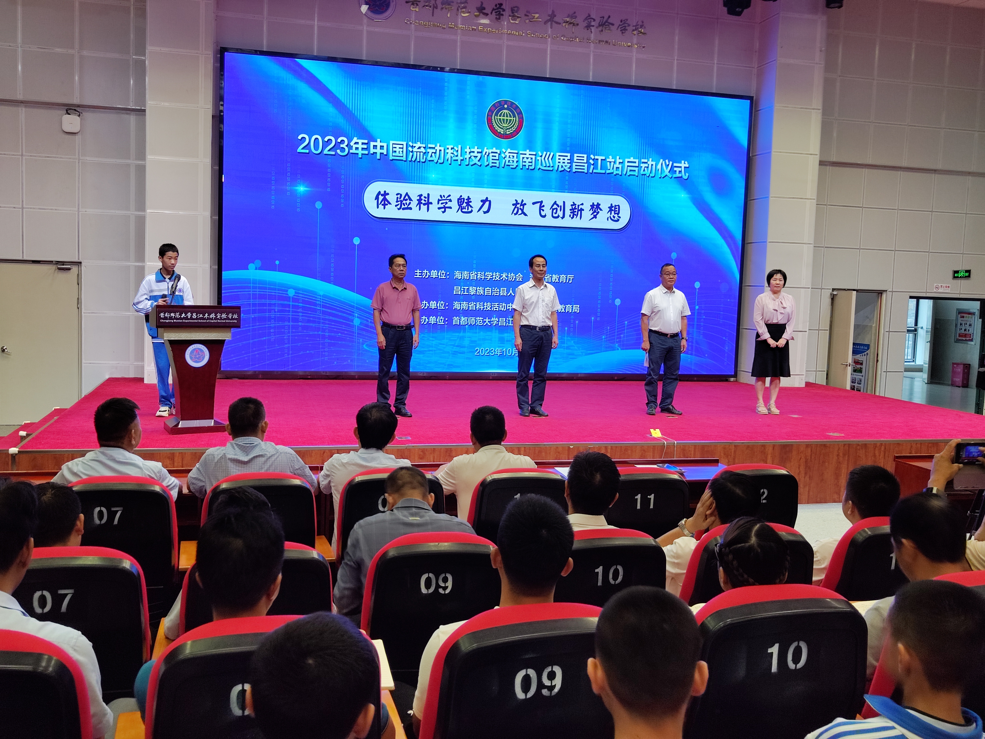 10月18日,中国流动科技馆海南巡展昌江站启动仪式在首都师范大学昌江木棉实验学校举行,省科协二级巡视员吴钟海出席并致辞,昌江县人大常委会副主任黄胜卫出席启动仪式。省科技活动中心、昌江县科协等单位负责人,首都师范大学昌江木棉实验学校500名师生参加。