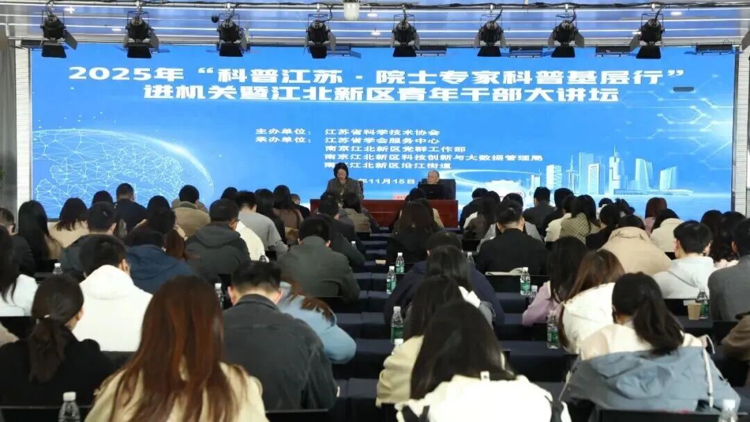 11月15日,2025年“科普江苏·院士专家科普基层行”进机关暨江北新区青年干部大讲坛举行。本次活动由江苏省科协主办,江苏省学会服务中心联合南京江北新区党群工作部、科技创新与大数据管理局、沿江街道共同承办。