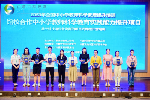 8月16日至20日,由教育部教师工作司、中国科协科普部主办,中国科技馆牵头,内蒙古教育厅和内蒙古科协指导,内蒙古科技馆承办的2023年全国中小学教师科学素质提升培训“馆校合作中小学教师科学教育实践能力提升”项目培训班结业。来自内蒙古、新疆、甘肃、青海、陕西、宁夏、西藏和新疆生产建设兵团的110余名中小学科技教师及科技馆科技辅导员参加培训。本次培训以线上线下相结合的形式举办,线上累计点击量达9万余次。