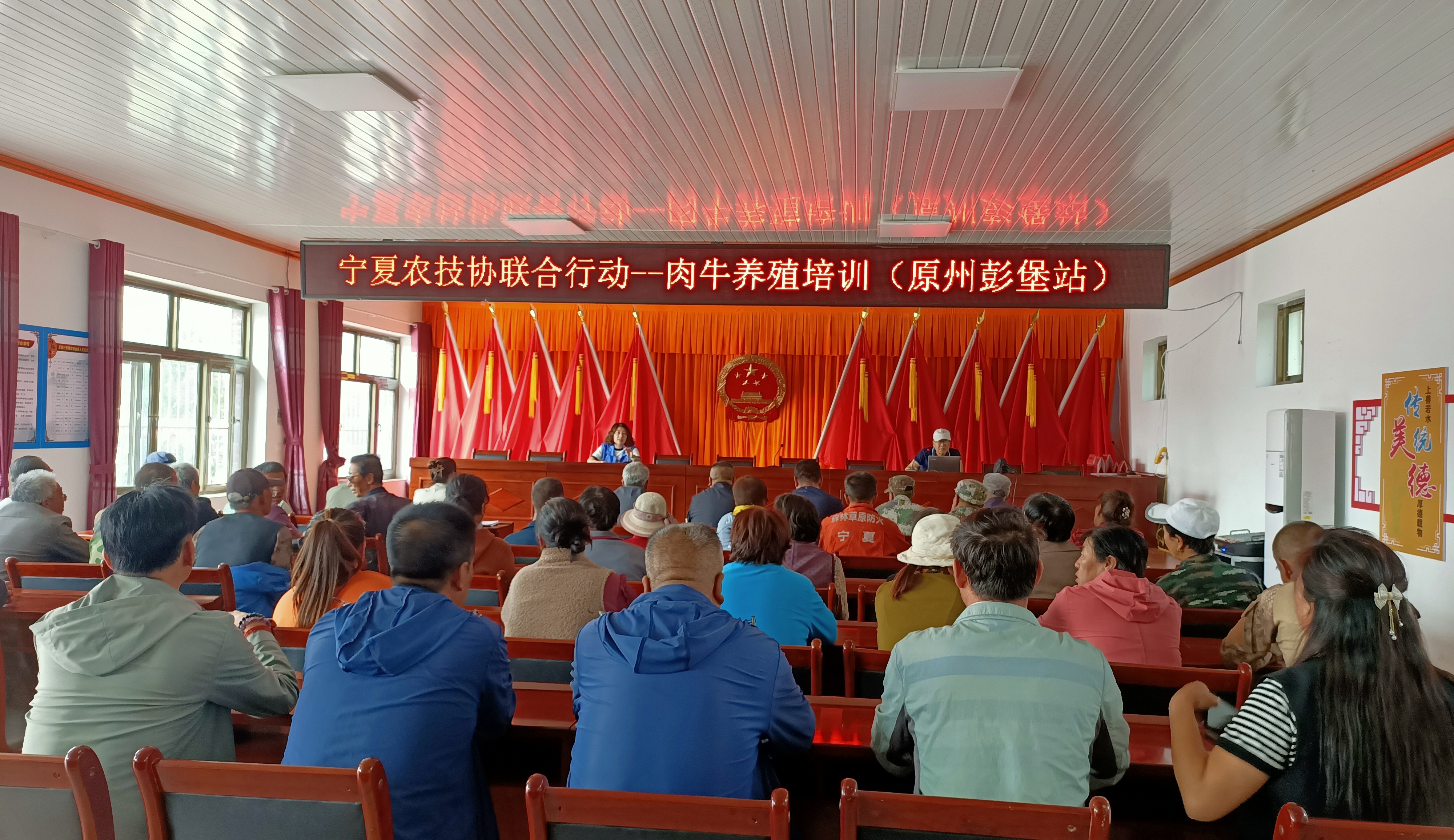9月5日—8日,全国科普日来临之际,宁夏科协科普工作队、宁夏农技协联合固原市科协、原州区科协在原州区彭堡村、撒门村、阳洼村等7所村庄,通过集中授课、现场指导的方式开展了肉牛养殖提质增效培训,来自当地的二百余名肉牛养殖户及养殖企业技术骨干参训。