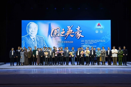 首演仪式后,由同济大学师生带来的原创话剧《国之英豪》精彩上演。该剧根据我国桥梁工程与力学专家、教育家、社会活动家、同济大学老校长李国豪的生平创作而成。全剧共分为“烽烟寻路”“狂风大浪”“西行东归”“迎接黎明”“逆境求索”“两个转变”“历史作证”七幕,以现实主义手法和高度凝练的舞台艺术表现,塑造了少年、中年及老年时期李国豪爱国奋进的人物形象,艺术再现了李国豪毕生心怀爱国报国赤诚、为国奋斗不息的人生历程,生动展现了李国豪心系祖国和人民、为祖国科教事业不懈奋斗的光辉形象。同时,该剧紧扣中国梦的主题,从侧面表现了我党在中国现代化进程中发出的时代召唤,引领数代科教工作者求实创新、奋进不止,投身于民族复兴的伟业之中。