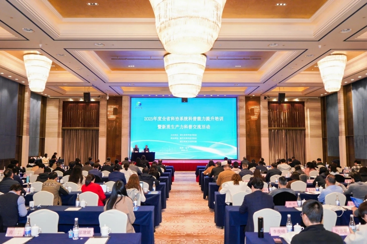 12月8—9日,2025年度浙江全省科协系统科普能力提升培训暨新质生产力科普交流活动在浙江省杭州市举行。本次活动深入贯彻落实党的二十届四中全会与省委十五届八次全会精神,总结“十四五”工作,谋划“十五五”思路,研讨2026年工作重点,推动科普高质量发展。浙江省科协相关负责人,11个设区市科协以及部分科技馆、学会、科普教育基地代表等100余人参加活动。