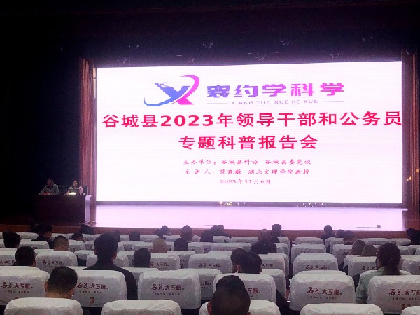11月6日,湖北省襄阳市谷城县科协在县委党校报告厅举办2023年领导干部和公务员“襄约学科学”专题科普报告会,特邀湖北文理学院裴晓敏教授为全县领导干部和公务员代表作专题辅导,县融媒体中心在“云上谷城”平台面向全县党政机关进行了同步直播。