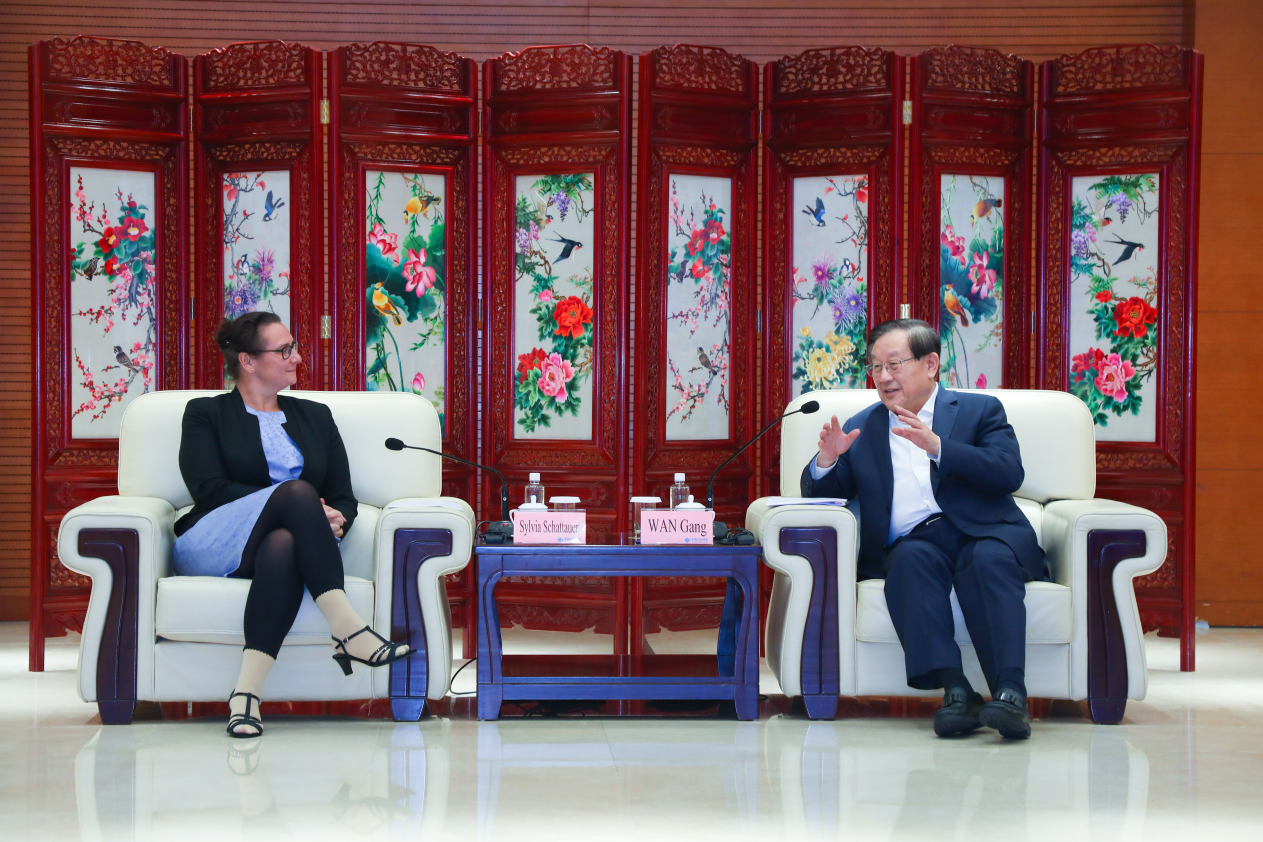 9月20日,中国科协主席万钢在京会见德国克劳斯塔尔工业大学校长西尔维娅·沙陶尔(Sylvia Schattauer)一行,就加强中德科技人文交流合作等相关话题交流探讨。