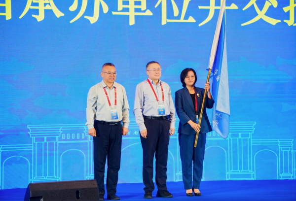 开幕式上,海南热带海洋学院作为2026年中国水产学会青年学术年会承办单位,由海南热带海洋学院党委常委、组织部部长林丽菲从包振民手中接过会旗,并代表承办单位向广大青年水产科技工作者和青年学子发出诚挚邀请,明年在碧海蓝天的海南三亚相聚,继续畅谈交流水产领域创新成果。