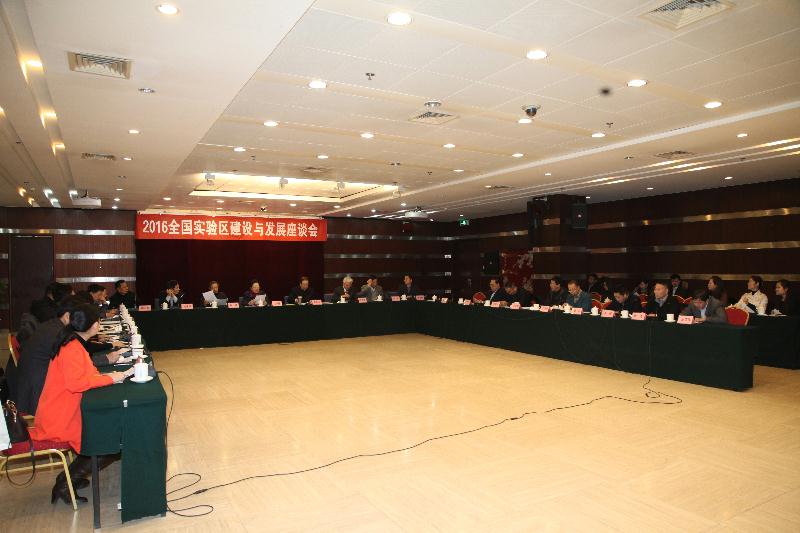 2016年1月10日,中国国土经济学会在北京国际竹藤大厦召开2016年全国实验区建设与发展座谈会。第十届全国政协副主席、理事长、全国实验区指导委员会主任张怀西,第一副理事长、全国政协人口资源环境委员会副主任江泽慧,中国科协学会学术部部长宋军,学会服务中心主任李志刚以及学会工作在国土资源部、农业部、中国人民大学、北京林业大学等部委和科研院所的常务理事、国土经济研究员、实验区专家委员38人出席会议。座谈会由江泽慧主持。学会副理事长兼秘书长、全国实验区办公室主任柳忠勤就2015年全国实验区建设与发展情况做工作报告。