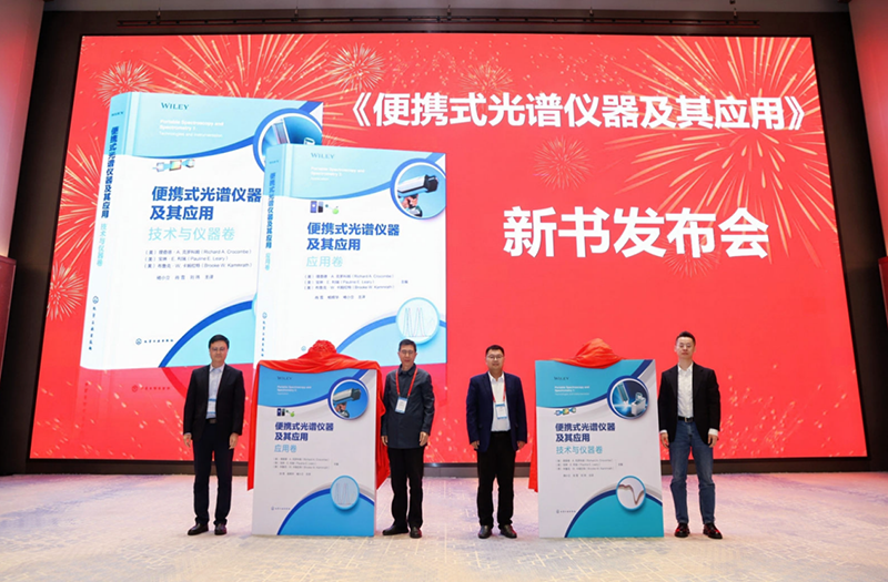 大会现场,由化学工业出版社正式出版发行的《便携式光谱仪器及其应用》丛书首发仪式举行。丛书责任编辑,化学工业出版社化工与环境出版分社副社长傅聪智,作者代表北京邮电大学教授杨辉华,广东药科大学副研究员肖雪,无锡迅杰光远技术总监兰树明上台揭幕。化学工业出版社化工与环境出版分社副社长傅聪智为丛书首发仪式致辞。