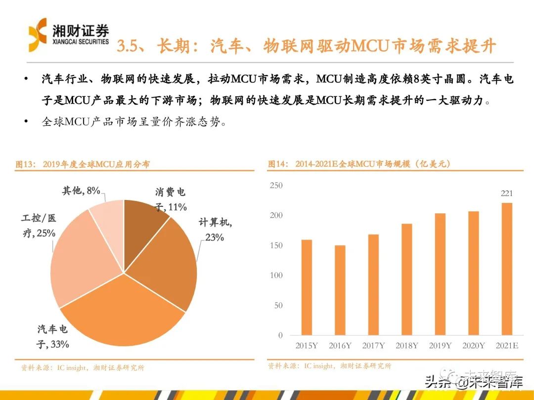 汽车、物联网驱动MCU市场需求提升:汽车行业、物联网的快速发展,拉动MCU市场需求,MCU制造高度依赖8英寸晶圆。汽车电 子是MCU产品最大的下游市场;物联网的快速发展是MCU长期需求提升的一大驱动力。全球MCU产品市场呈量价齐涨态势。